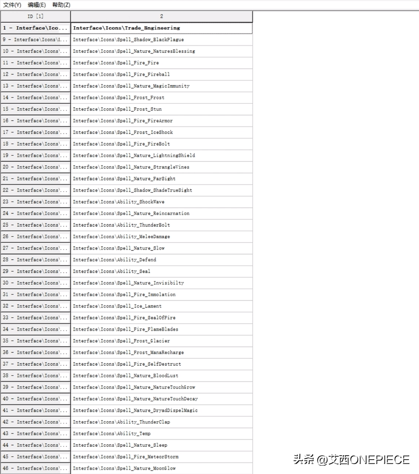 打开mydbc选择azerothCoreServer----data----dbc----spelllcon.dbc打开