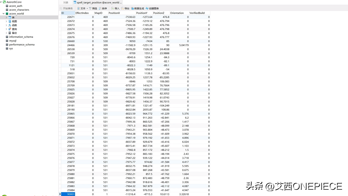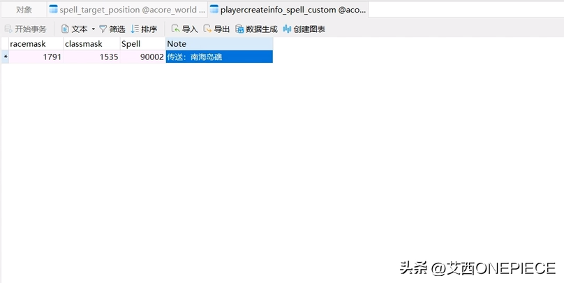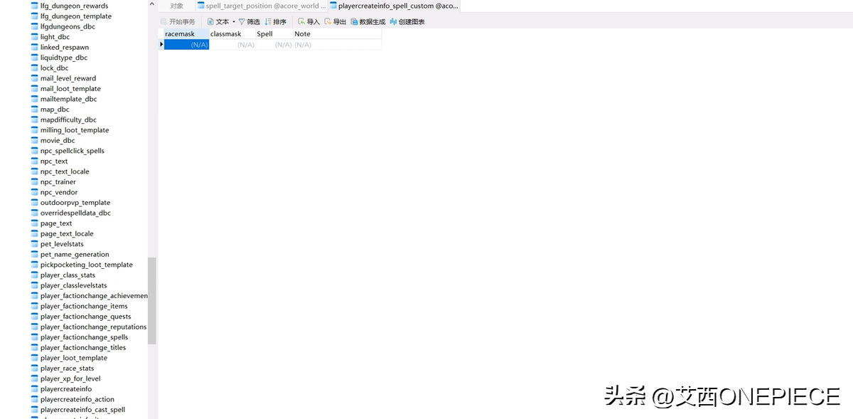 在navicat----acore_world----playercreateinfo _spell_ custom此数据表本身是空的