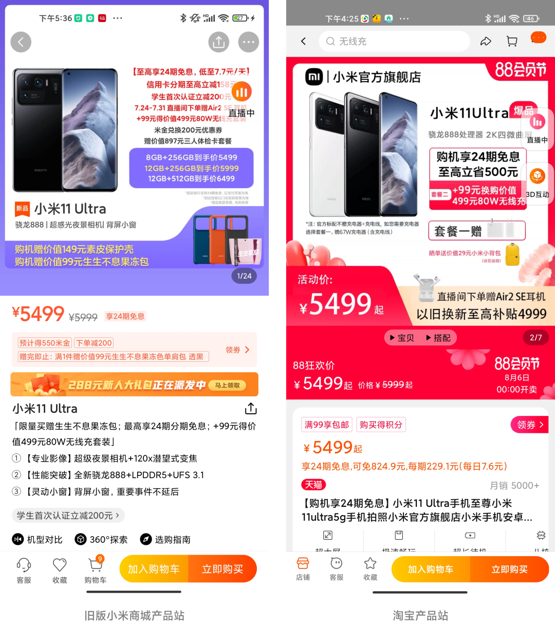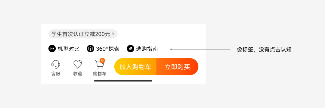 在产品站的页面中,最具有产品辨识度的底部按钮,两款产品设计形式与颜色几乎一摸一样,从品牌势能上来看,淘宝强于品牌电商的小米商城,所以把小米商城误以为是淘宝很正常。