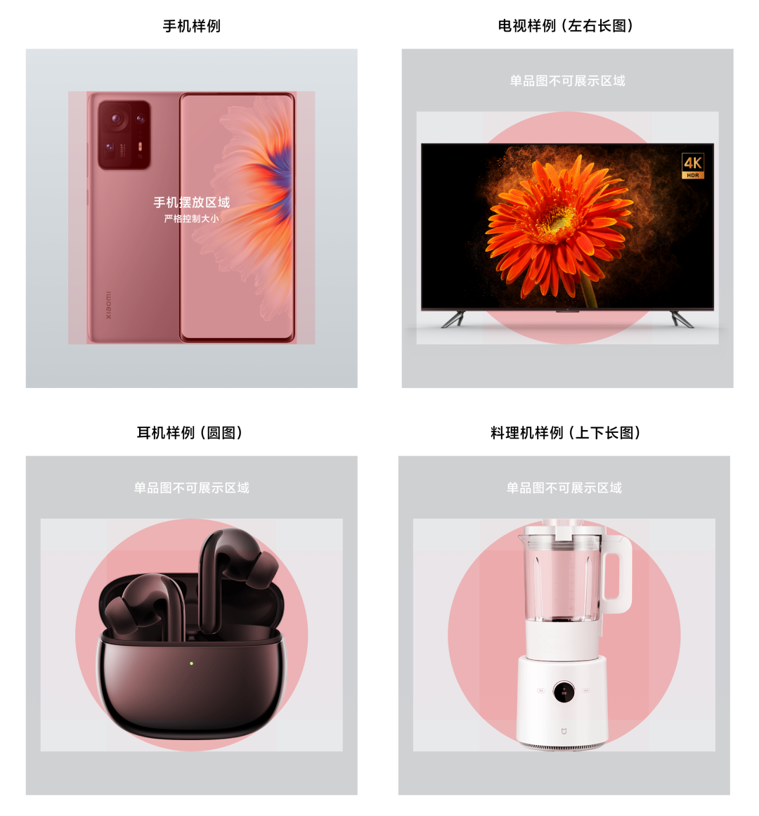 解决方案下图所示,规范了较为方正的产品和较长产品,不同的呈现尺寸,让视觉尽可能看起来统一。