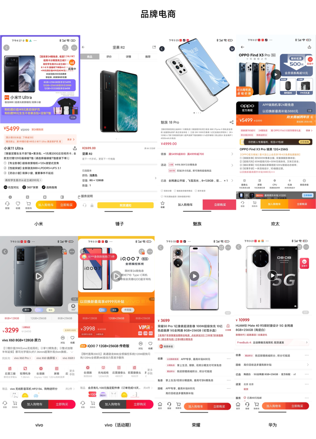 从设计风格上来看,综合类电商设计,营销感强,注重热闹的氛围渲染;品牌电商则设计更轻量,聚焦产品功能卖点,营销感较低。