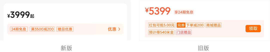整洁有品质设计,能提升产品在用户心中的溢价空间,简单说就是用户觉得很值;杂乱的设计,优惠信息冗余,用户没有安全感,不能直接感受到,能不能享受到最优惠的政策。