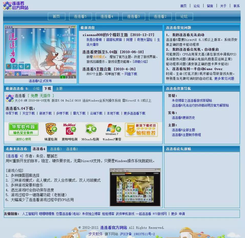 在连连看的官方网站llk.cn上,还可以查到制作者们对游戏的介绍。