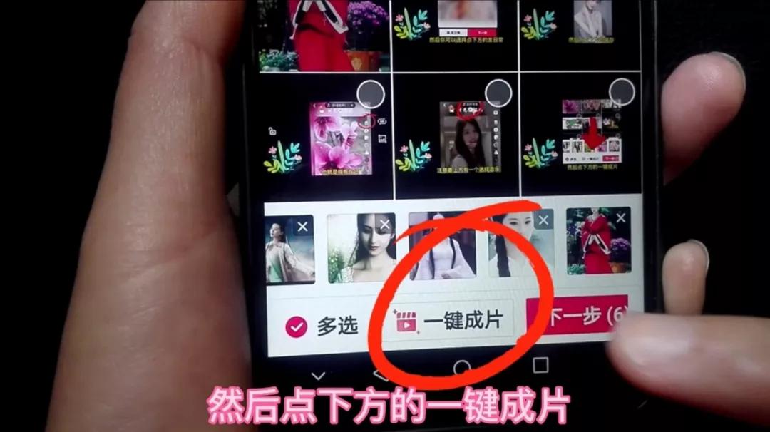 然后选择我们需要制作音乐相册的照片,在这里最多可以选择35张照片,然后点下方的“一键成片”,视频合成中,大家稍等一下,音乐相册立刻制作好了。
