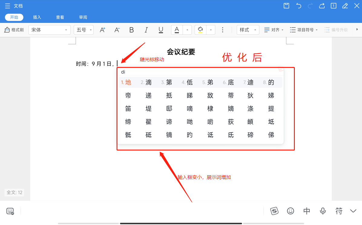 【展开更多候选】下拉可以展开更多候选,支持用户通过物理方向键以及数字键快捷上屏候选词,无需频繁翻页即可找到候选词;