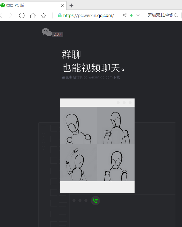 1、打开电脑浏览器,输入网址https://pc.weixin.qq.com/,出现以下图例: