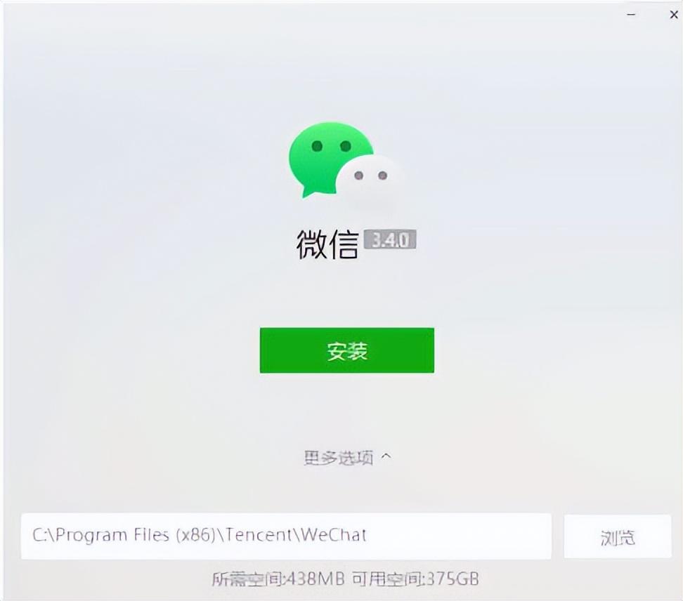 步骤二:数据加载完成后,就会跳转微信电脑版安装向导界面,点击“更多选项”,浏览更改安装路径文件夹。