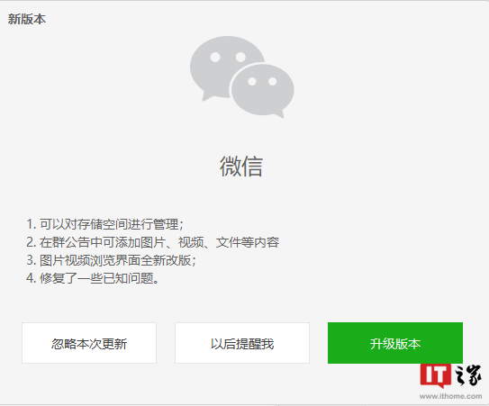 IT之家 5 月 31 日消息,据网友反馈,微信 Windows PC 电脑版 3.7.0.26 正式发布,可以在程序里面的关于微信-检查更新里面更新了。该版本带来了一些新功能和改版、修复等内容,包括可以对存储空间进行管理,在群公告中可添加图片、视频、文件等内容,图片视频浏览界面全新改版等等。