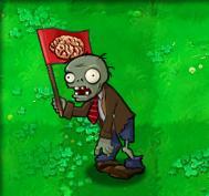 园子里常见的僵尸强壮度:低此类僵尸甚爱脑袋,从来都吃不够。脑袋、脑袋、脑袋,一天到晚如此。又老又臭的脑袋?腐烂的脑袋?过了青春期的脑袋?不要紧。本僵尸从不挑食。2、旗帜僵尸