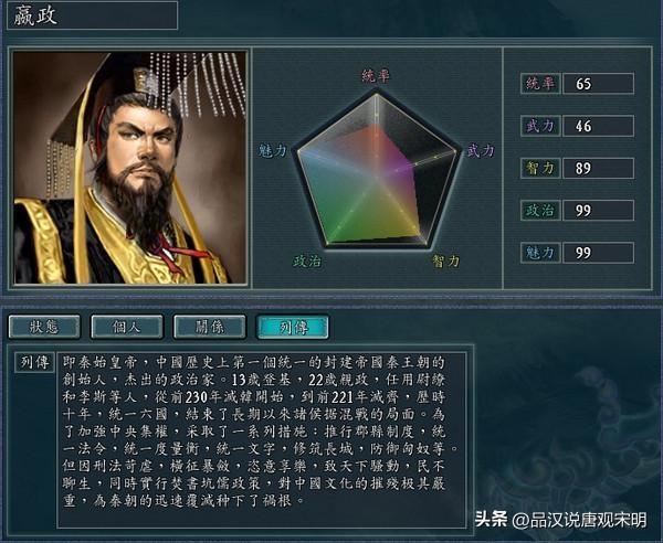 而第二类内政智谋型的代表人物,则是千古一帝秦始皇。
