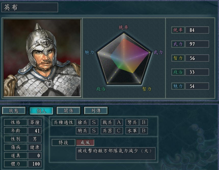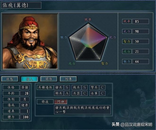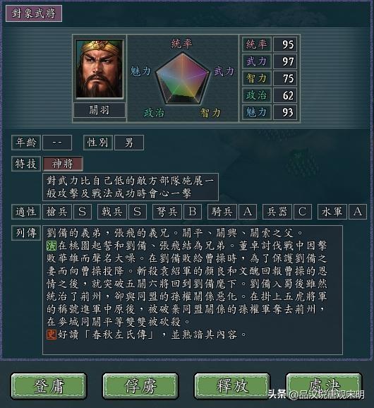从这个综合属性,我们大概就知道在光荣眼中,关二爷也实打实是武将群体中的三国第一人,而且独一档。