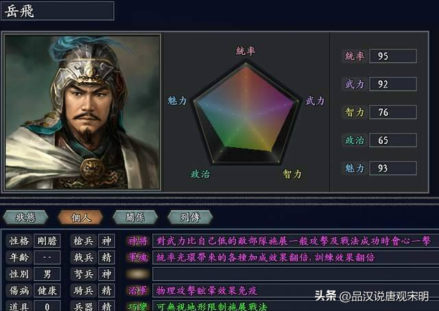 当然,这里面也有一个被光荣明显忽视的武将——岳飞。