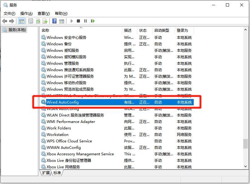 第二步:在页面中找到【Wired AutoConfig】,右键启用该服务即可。