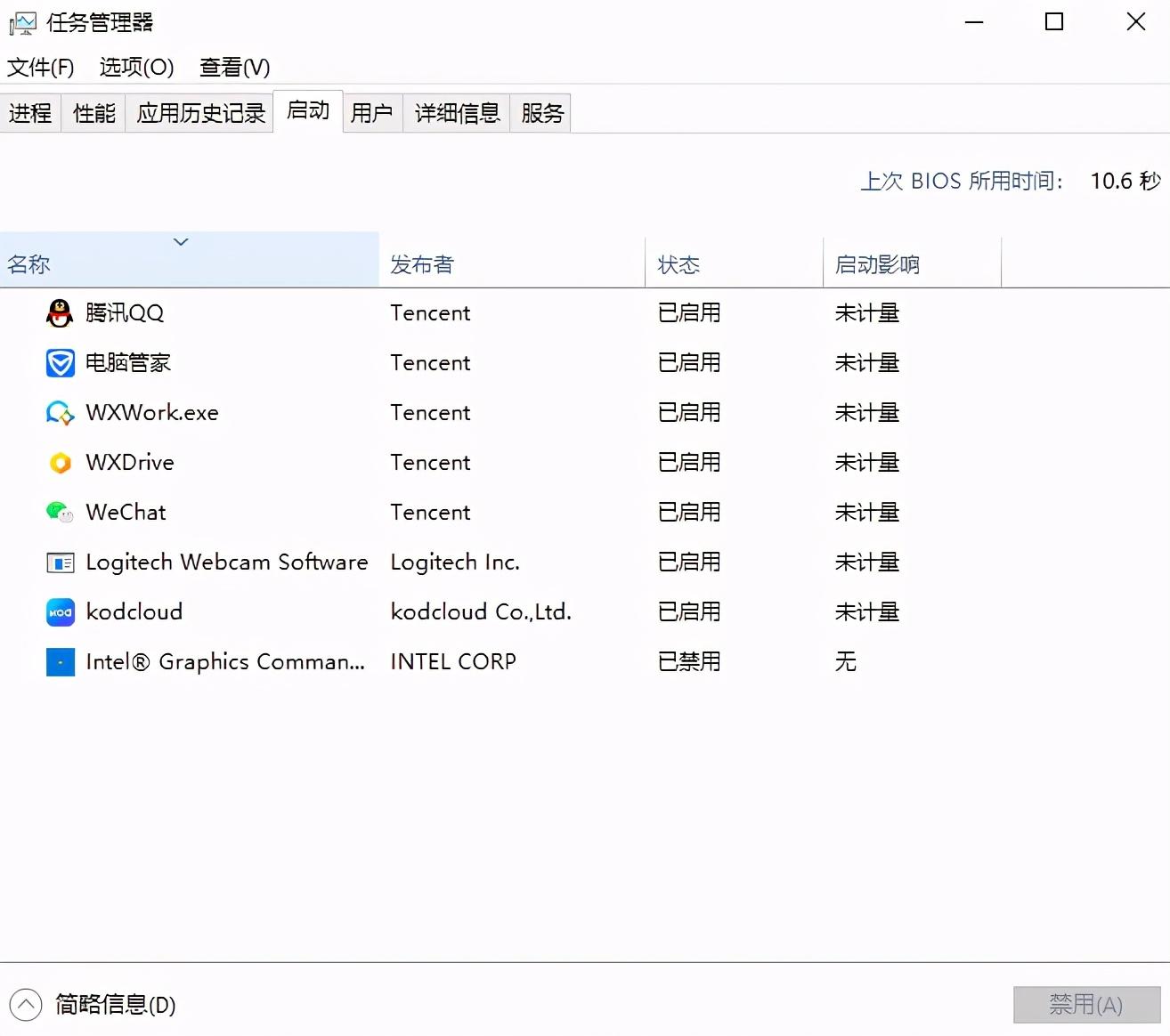 4、在任务管理器--启动选项卡里面就可以禁用启动项啦
