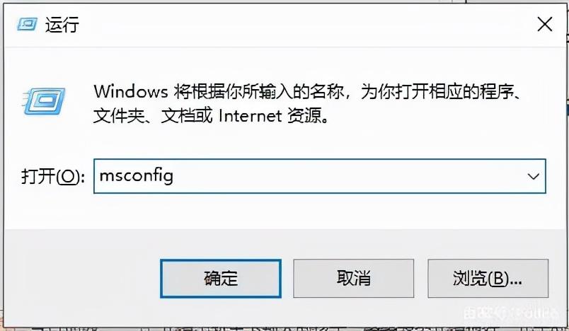 2、在命令中输入“msconfig”命令,打开系统配置对话框